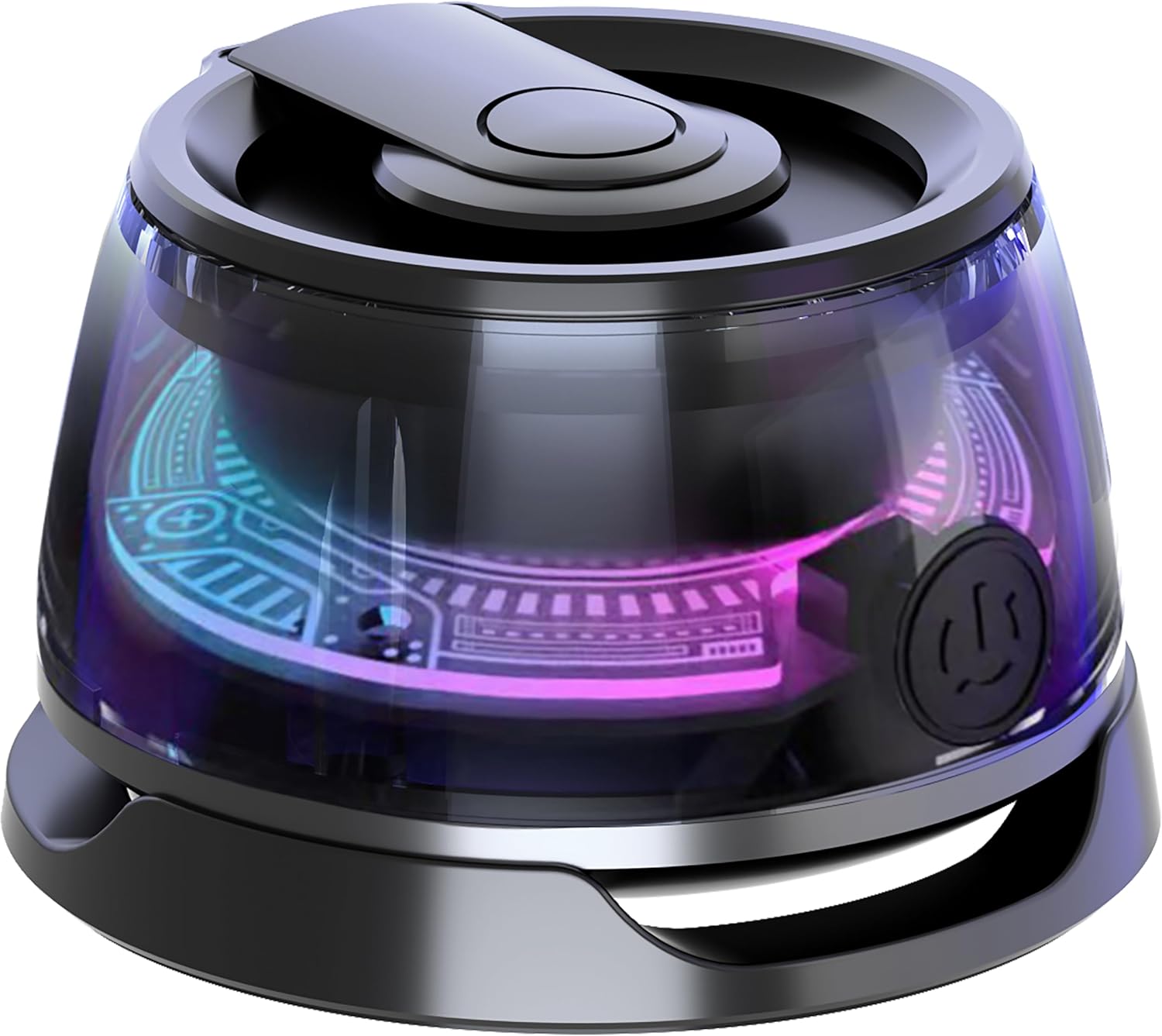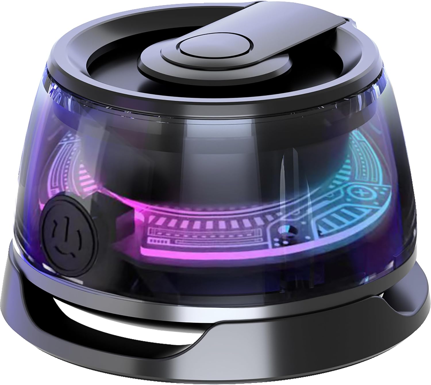 Disfruta de un sonido estéreo claro y potentes graves con este altavoz compacto que además se adhiere fácilmente a tu teléfono o cualquier superficie metálica gracias a su base magnética súper fuerte.