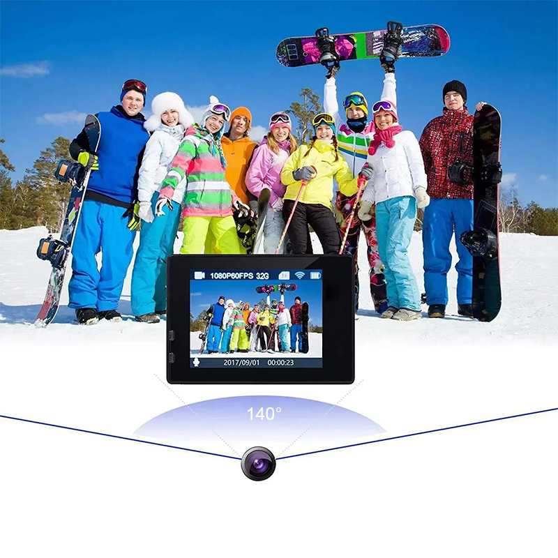 Diseñada para los amantes de la adrenalina y los deportes extremos, esta cámara deportiva te ofrece video en 4K a 30fps para grabar cada detalle con una calidad increíble. Resistente y sumergible, es perfecta para tus actividades acuáticas y aventuras al aire libre.