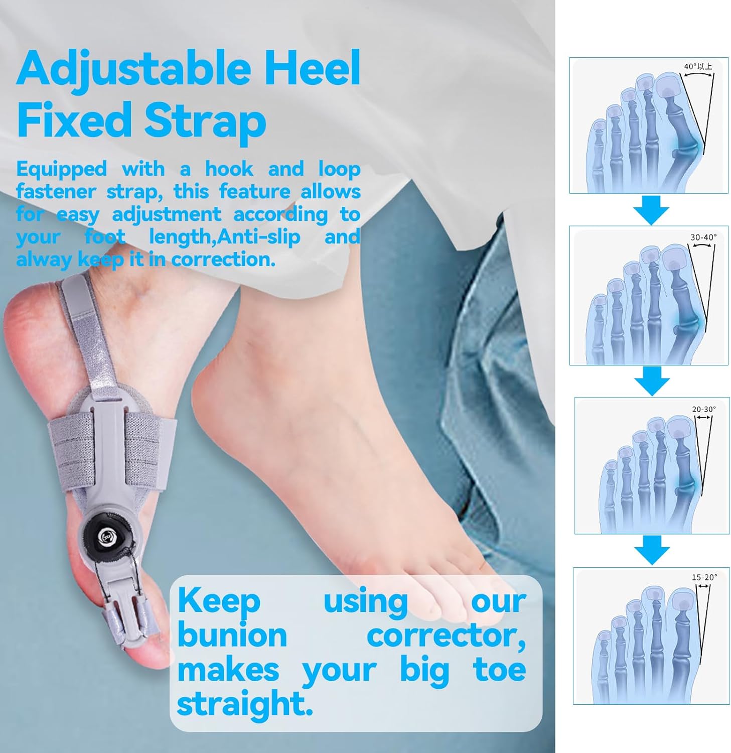 • Ajuste personalizado con rango de corrección hasta 180°, adaptándose al ángulo de tu juanete.