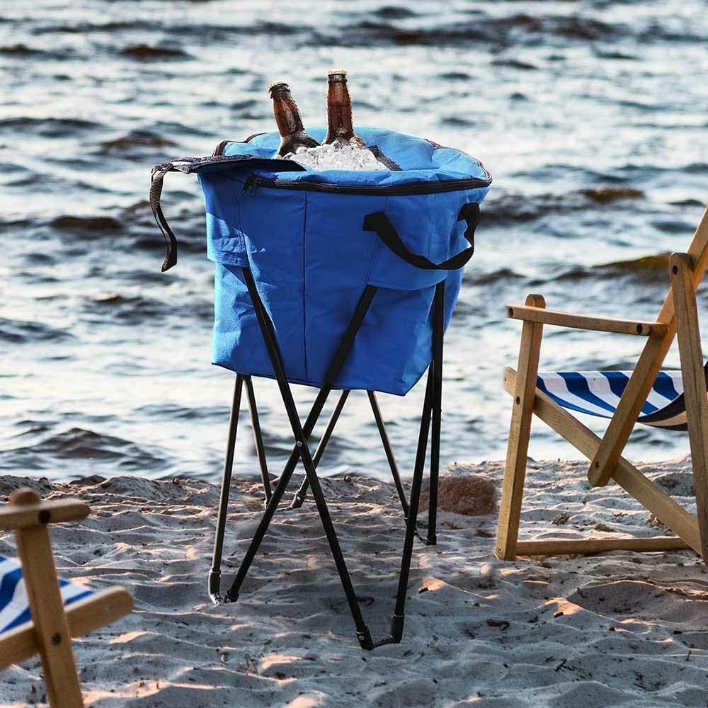 Compacta y práctica, con dimensiones de 18.5" de ancho, 18.5" de profundidad y 32" de alto, está fabricada en resistente poliéster para acompañarte en tus aventuras al aire libre, viajes o días de playa.