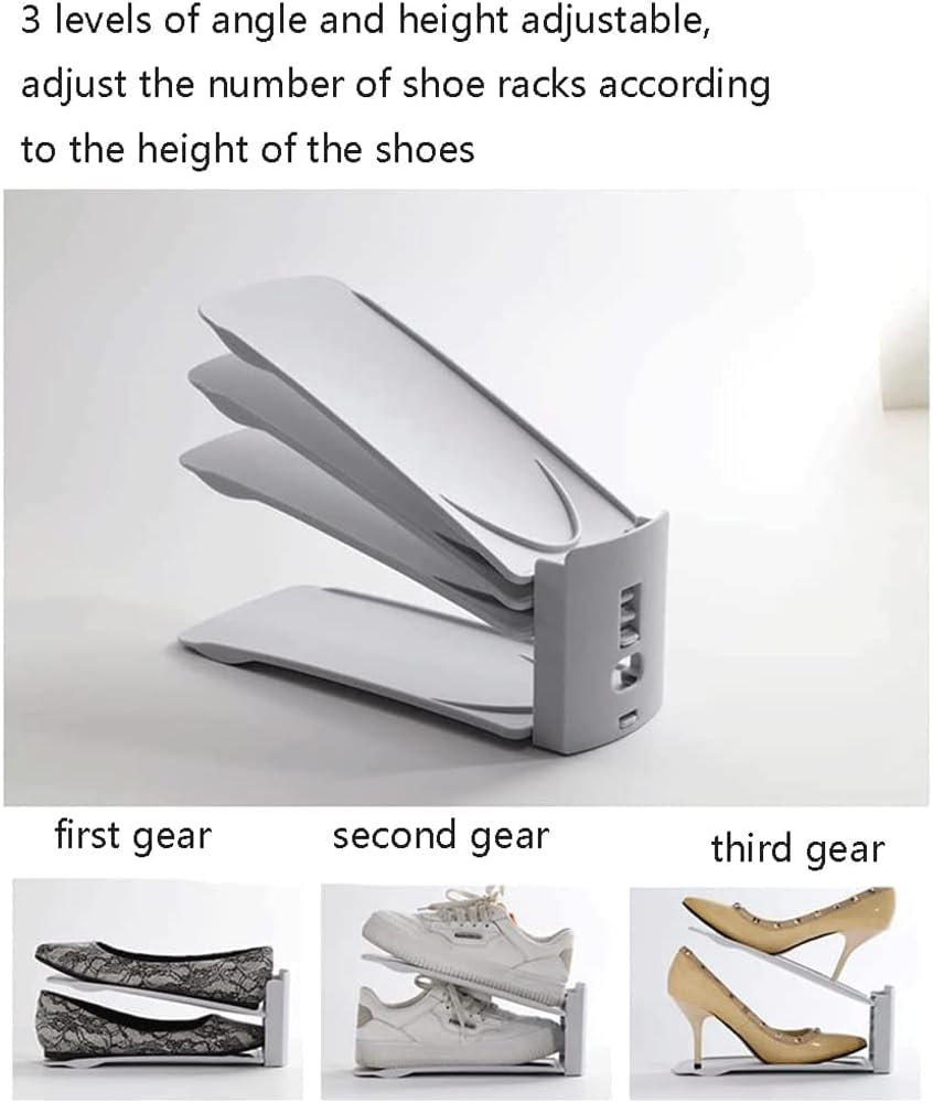 ¡Multiplica el espacio de tu estante en segundos! Este práctico organizador de doble nivel te permite guardar dos zapatos en el espacio de uno, manteniéndolos ordenados, visibles y sin deformarse.