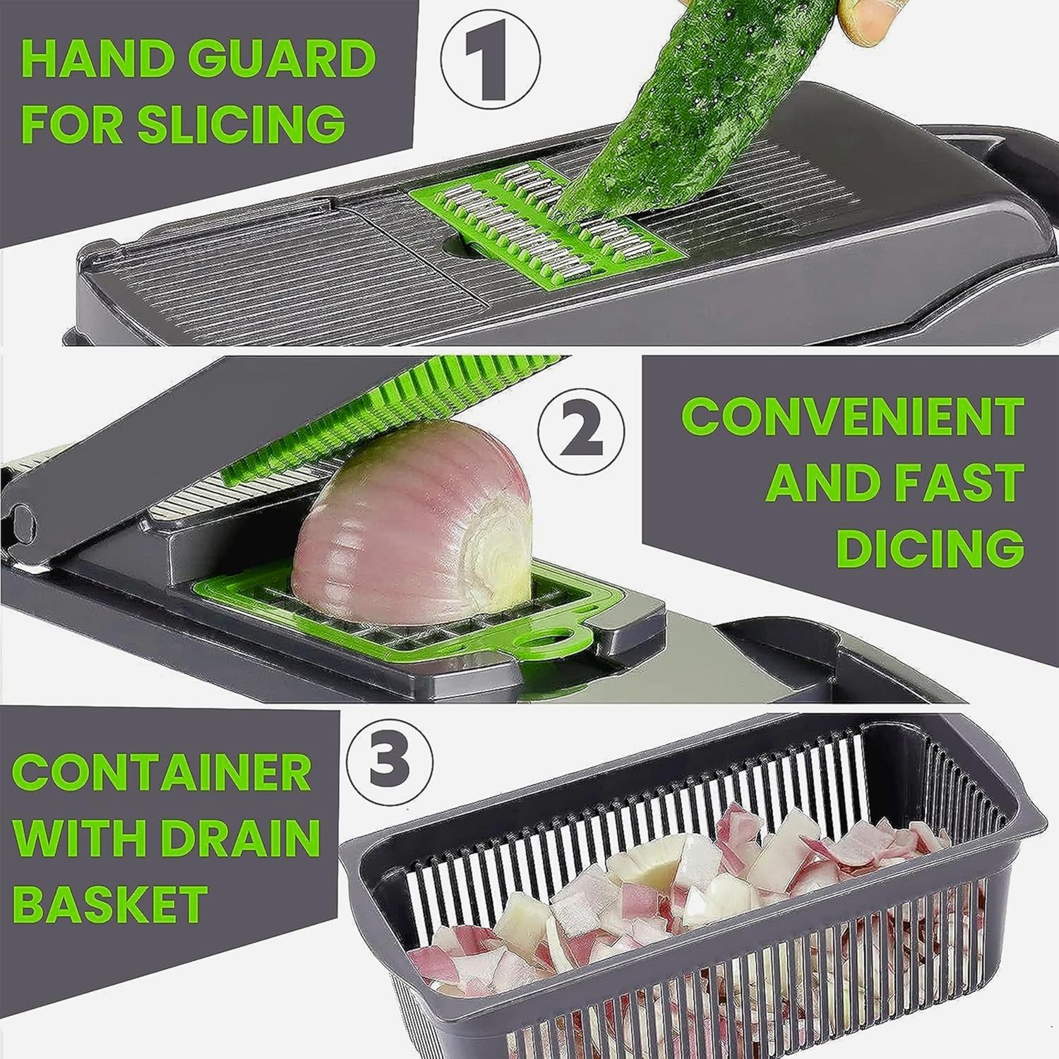 PICADORA DE VERDURAS 15 EN 1 CON 8 CUCHILLAS REEMPLAZABLES