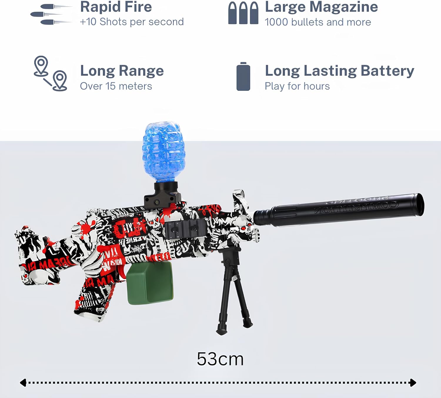 Sumérgete en emocionantes combates con amigos o familia con este Rifle Gel Blaster de diseño único con grafiti, pensado para brindar diversión segura y sin límites. Perfecto para aventuras al aire libre, competencias o simplemente pasar un rato inolvidable.