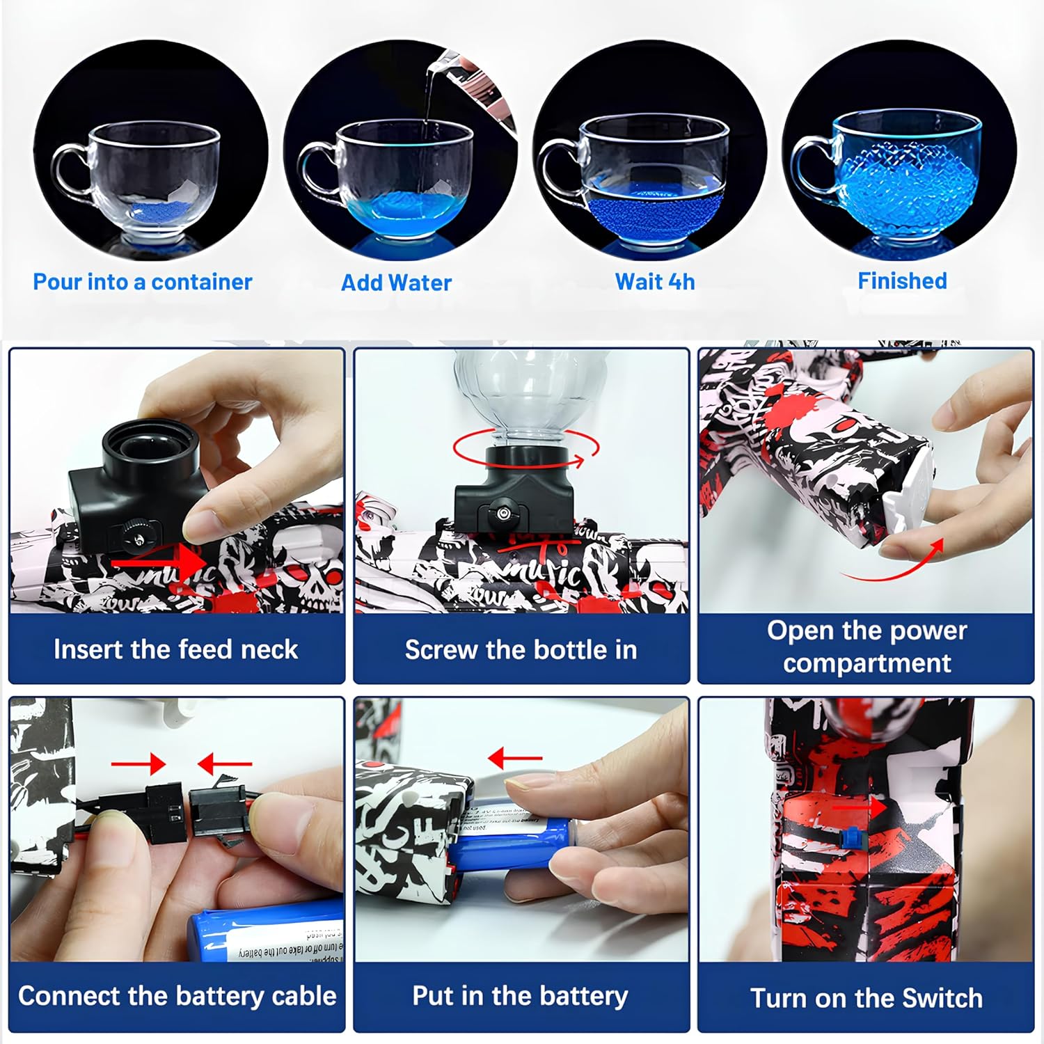 • Fácil de usar: Solo hidrata las bolitas, carga el blaster, ¡y empieza la acción!