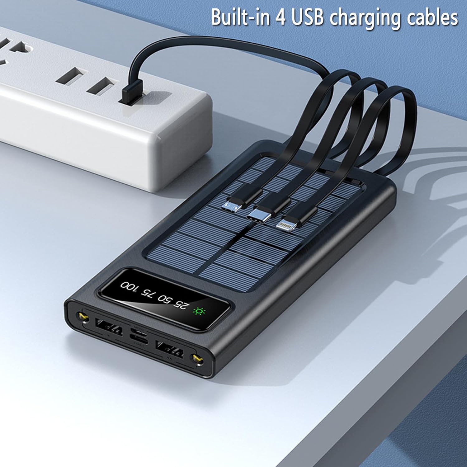¡Nunca te quedes sin batería! Con su gran capacidad de 20.000 mAh y panel solar incorporado, este cargador portátil es tu mejor aliado para aventuras al aire libre, viajes o emergencias.