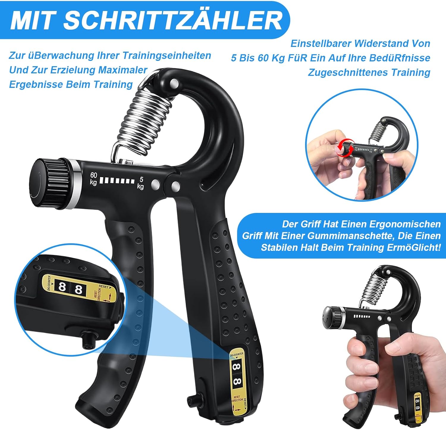 🔧 Hand Grip Ajustable con Contador (20–80LB): Ajusta la resistencia según tu nivel y monitorea tu progreso fácilmente.
