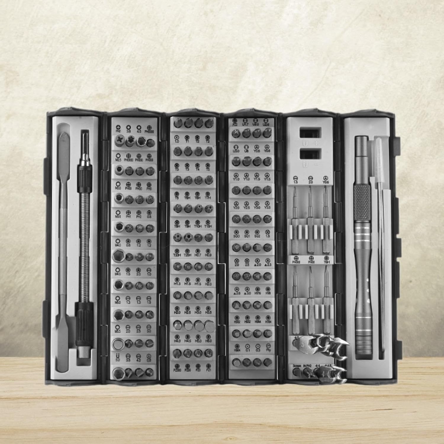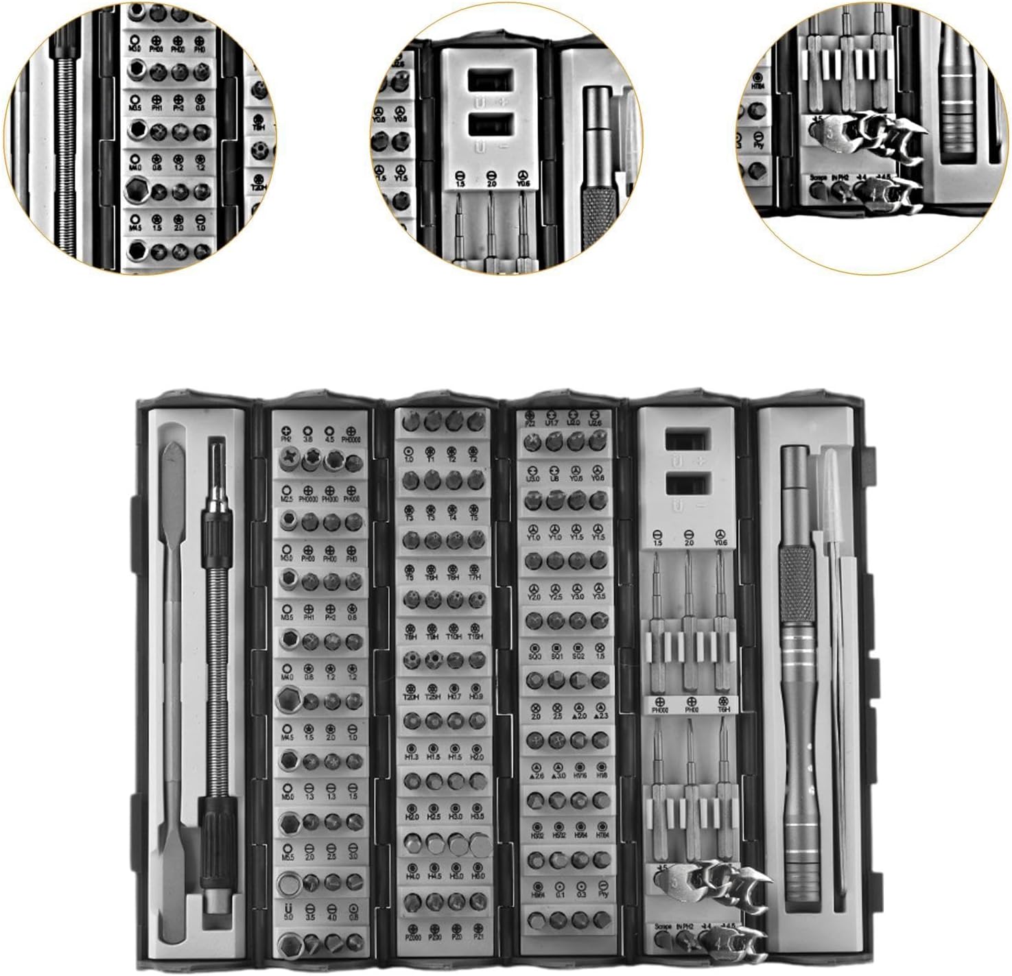 Las puntas garantizan una durabilidad superior y una retención de par excepcional, ideales para reparar teléfonos, computadoras, discos duros, relojes, afeitadoras, juguetes y mucho más.